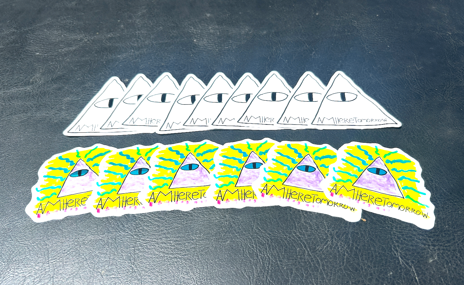 Be your own Tomorrow God with these classic Am Here Tomorrow logo stickers for your phone, water bottle, laptop, skateboard, your favorite bridge— wherever you wanna stick it, this sticker will stick!